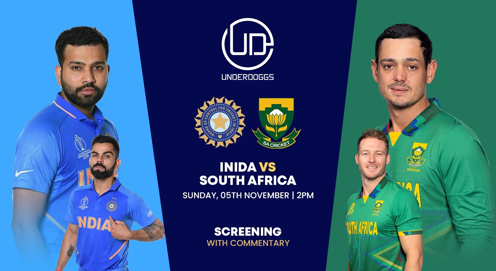 Mark November 5th for an exciting match - India Vs South Africa. Join us at Underdoggs for live screening and Irresistable offers.