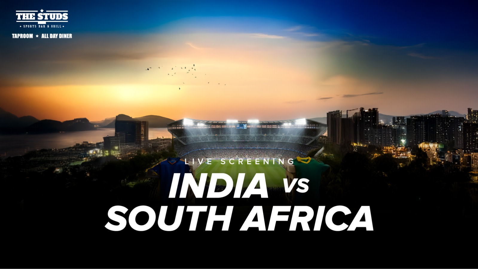 The India vs South Africa T20 series is here — and we’re screening every match LIVE at The Studs Sakinaka with the loudest cheers, happiest hours & the biggest fan energy