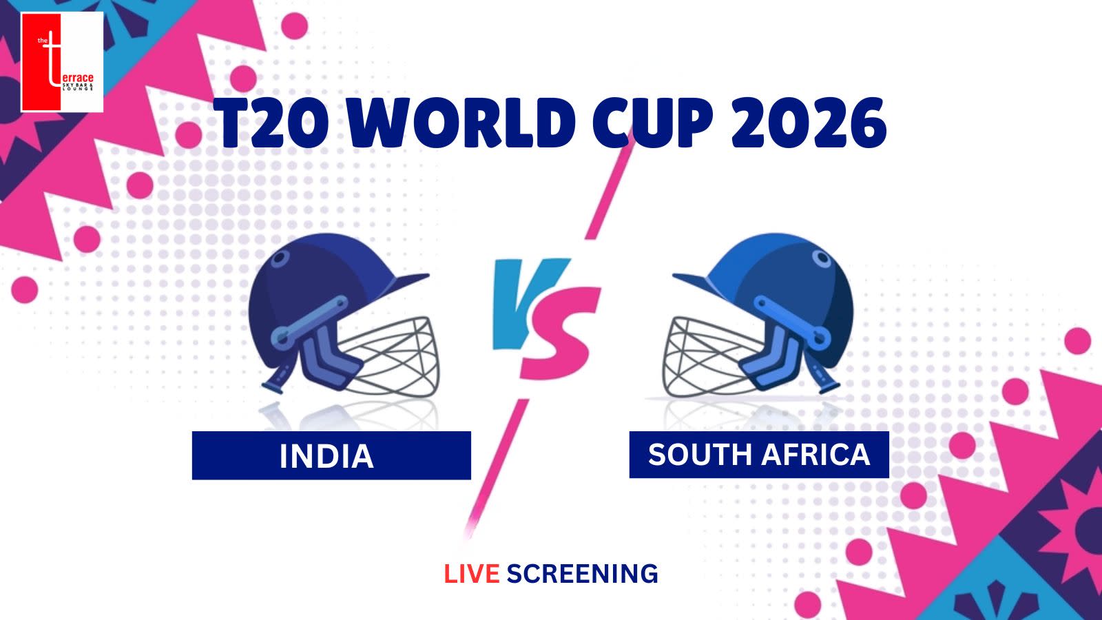 Catch every boundary, breakthrough, and match-turning moment LIVE on premium big screens at The Terrace, Ghaziabad. Experience stadium-like vibes, roaring cheers, delicious food, signature cocktails, and an unforgettable rooftop match night.