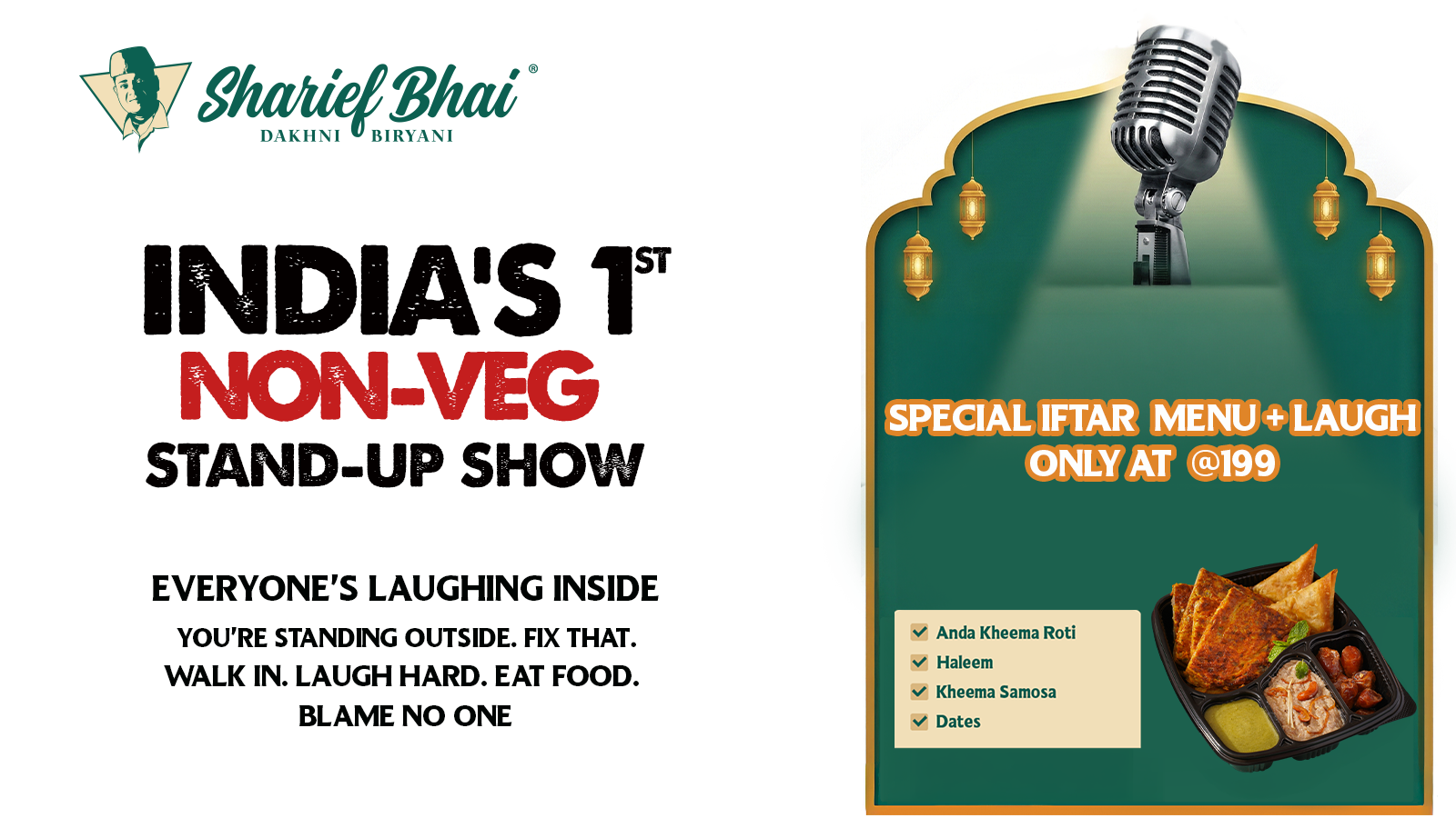 And yes, the vibe matches the menu. Come feast on delicious biryani and enjoy jokes with real bones. It’s fully non-veg on the plate and on the mic. 😄🔥