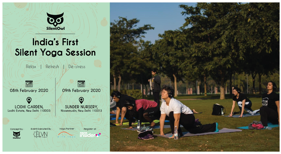 A Silent Yoga class is pretty much like your typical yoga class, except you wear a wireless headset through which you can hear your instructor as well as Meditation Music.
