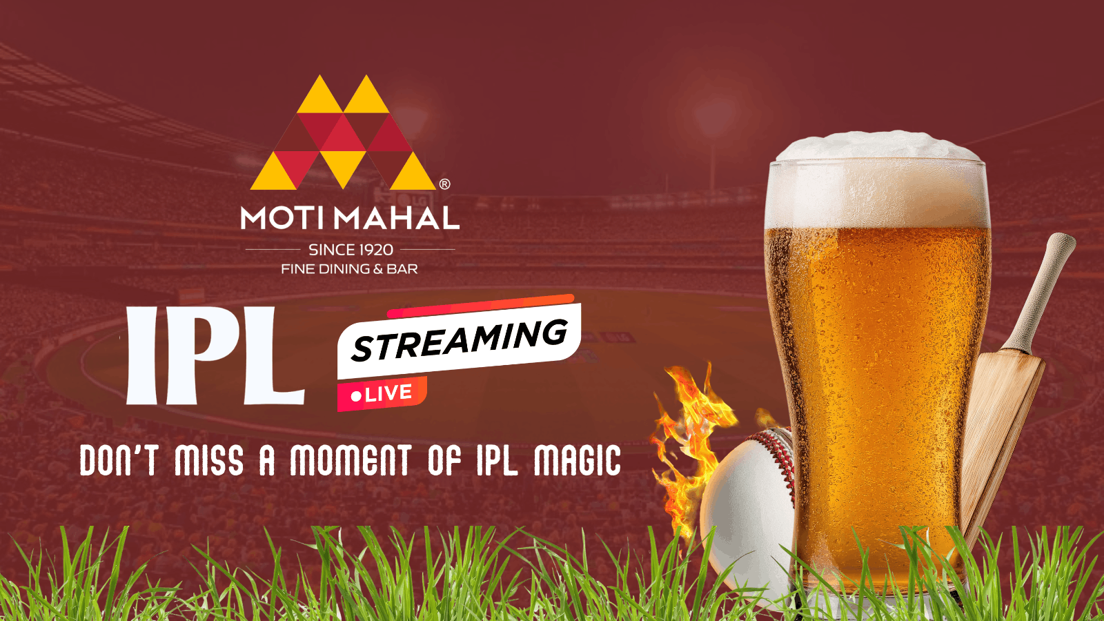 Catch every boundary, six, and wicket LIVE at Moti Mahal Fine Dining & Bar! 🏏🔥