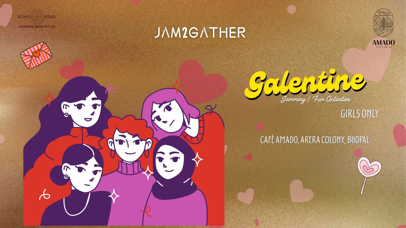 Jam2Gather brings you a Galentine Edition Sundowner—an all-women jamming celebration at Amado, made for laughter, music, and meaningful moments. Gather your girl gang, ditch the boys for the evening, and soak in a serene sundowner vibe filled with live jamming, fun activities, face painting, and candle making. It’s a cozy, creative space to celebrate friendship, unwind together, and make memories as the sun sets.
