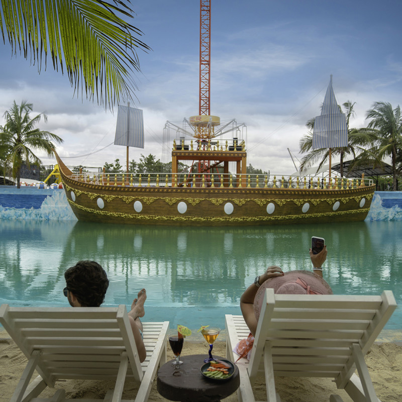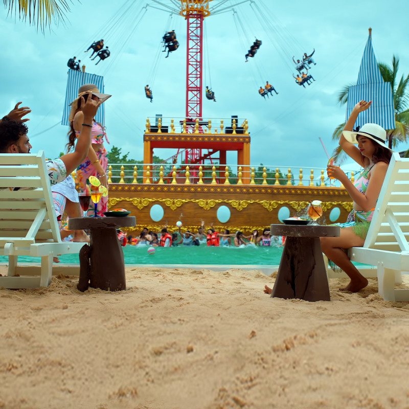 The place is a days destination for entire family. It can be extended evening also with multimedia show. The place has great food facilities, esp a man made beach with a bistro. The place has safety formalities with height and weights in various rides and slides.