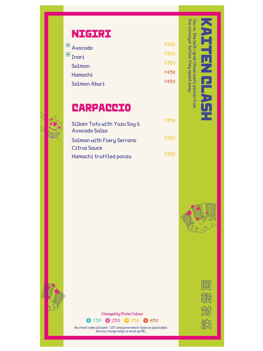 Inspired by Tokyo’s iconic sushi belts, this is a loud, playful, high-energy dining experience. Lock eyes with your favourites, strike at the perfect moment, and don’t hesitate — or miss your plate.