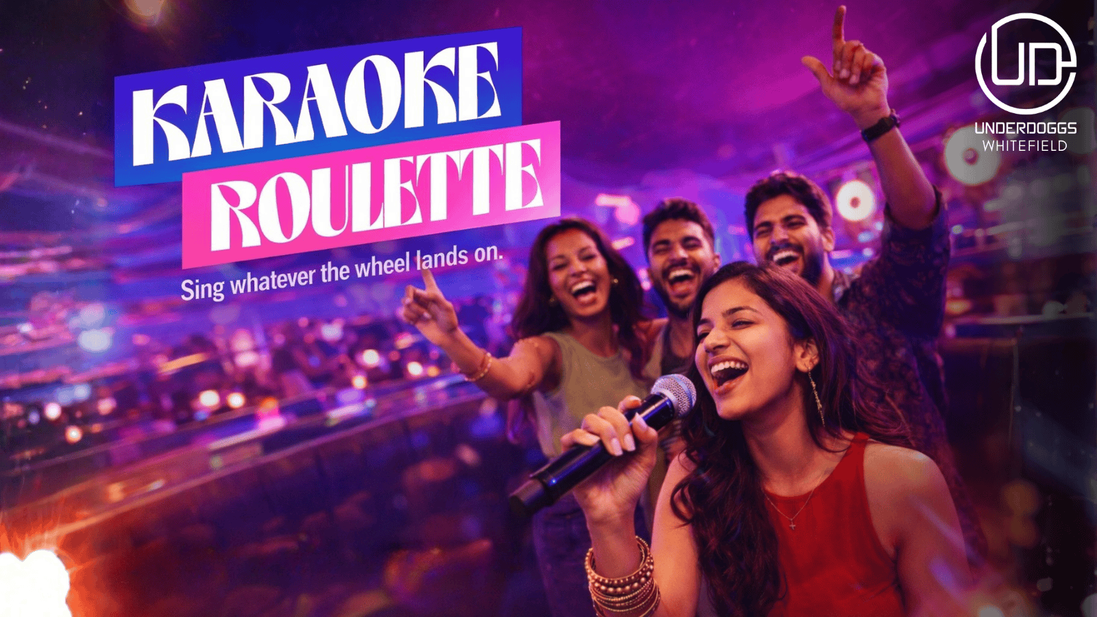 Get ready for a karaoke night with a twist at Karaoke Roulette, happening at Underdoggs Whitefield on Thursday, 8th January from 8 PM onwards 🎶✨