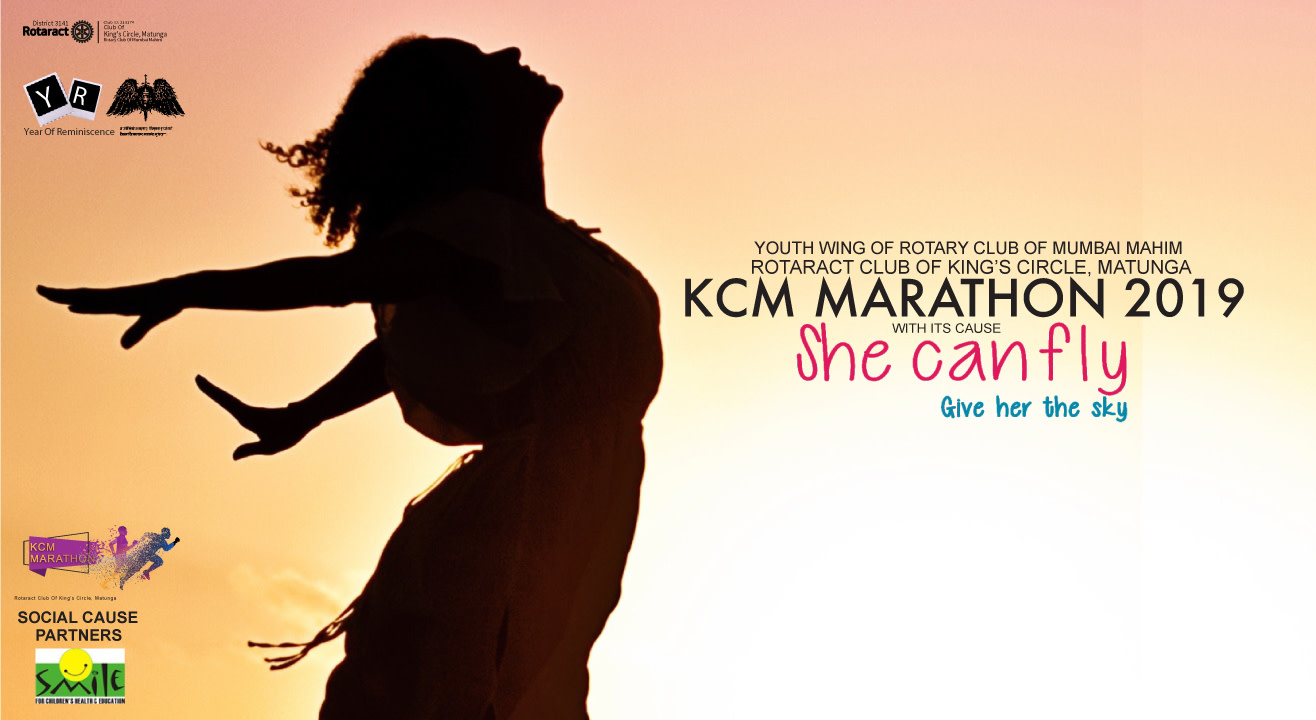 A Running Marathon for Adults and Children, organized by Rotaract Club of King’s Circle, Matunga, the Youth wing of Rotary Club of Mumbai Mahim. This Marathon is for the Cause “She Can Fly” in association with Smile Foundation. Smile foundation is an Indian NGO which is benefitting over 6,00,000 children and their families through more than 250 projects on education, livelihood, healthcare and women empowerment. It is also for ‘Empowering underprivileged children, youth and women through education’. “She Can Fly” cause let’s all girls get their right to education, which goes with the line in Marathi “Mulgi shikli, Pragati Jhali!” This change is being brought in the Community by the Community Service Avenue of Rotaract Club of King’s Circle, Matunga.