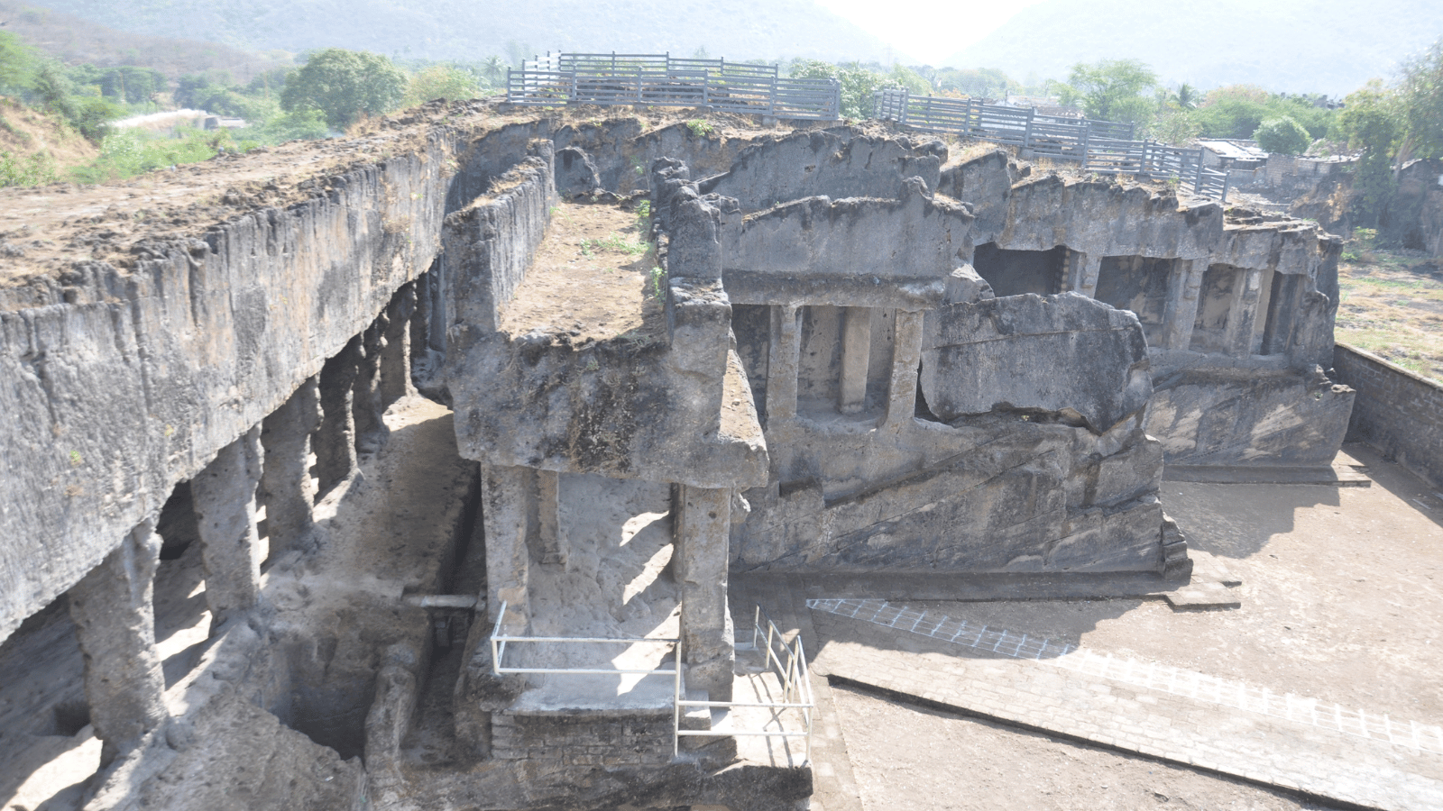 The Baba Pyare group contains three rock cut levels, including spacious cells, courtyards, pillars, and door frames decorated with symbols such as the swastika, triratna, and ankush. The Khapra Kodiya caves feature a longitudinal ridge, a western wing with water tank grids, and a U shaped residential wing for monks. Together they display both functional monastic planning and refined artistic expression.