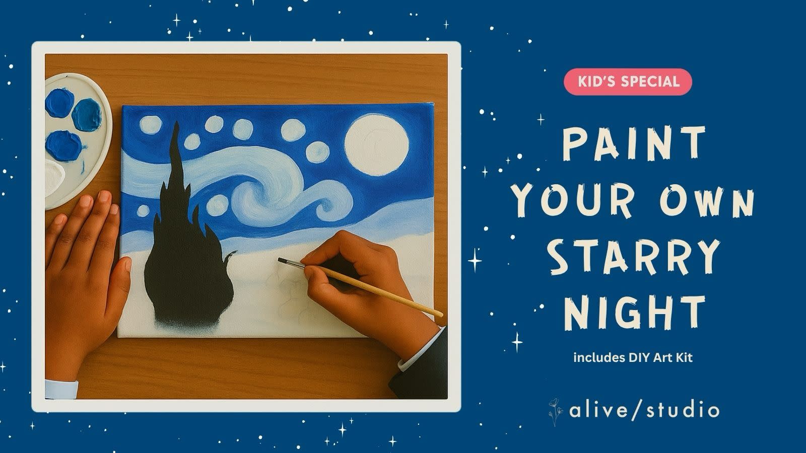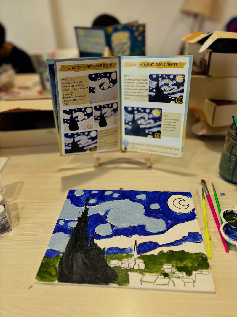 Join us for a fun and creative art workshop where kids can recreate Vincent Van Gogh’s “Starry Night” using our DIY Starry Night Art Kit which includes all the material along with engaging activities and projects which will introduce children to Van Gogh's bold colors and innovative techniques. They’ll learn blending techniques to achieve beautiful hues and have the opportunity to explore their creativity while bringing this famous artwork to life. No prior experience is necessary. Perfect for young artists eager to learn and have fun!
