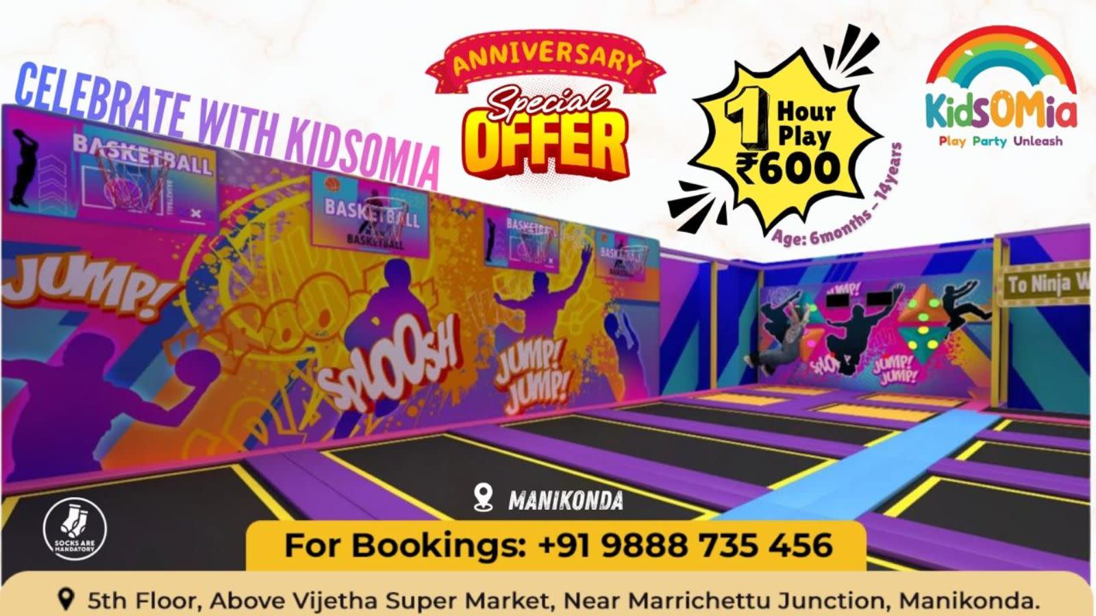 At Kidsomia Play Zone, kids unplug from screens and step into a world of pure, active fun! Our vibrant, gadget-free paradise is designed to let children explore, move, and make unforgettable memories. Whether they're bouncing high on the trampoline, showing off their skills at the slam dunk zone, or kicking it up on the football turf, there's excitement around every corner.