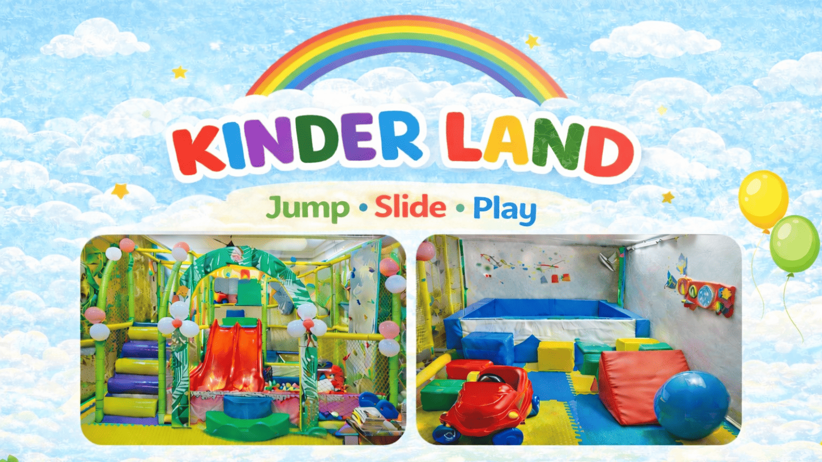 Step into a world of joy at Kinder Land, Badlapur’s favourite indoor play zone designed for children’s active play and exploration. From the ball pool and trampolines to the wall climber, double roto slides, punching bags, auto car rides, and sand play area, every activity sparks excitement and energy. Kids can also enjoy a pretend kitchen, magnetic board, alpha-number cube challenges, pony and dog ride-ons, Step-N-Slide, and a tube tunnel with a slide. Perfect for playdates, weekend family fun, and birthday celebrations — Kinder Land is where kids stay active, creative, and always smiling!