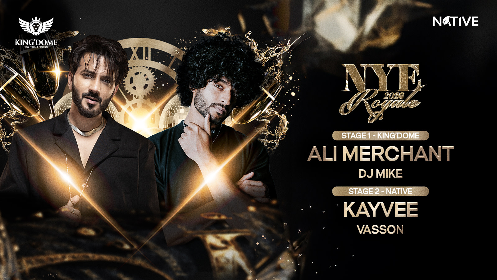 KING’DOME NYE ROYALE brings you a power-packed night with two iconic stages, two distinct musical worlds, and one exclusive festive pass that gives you access to it all.