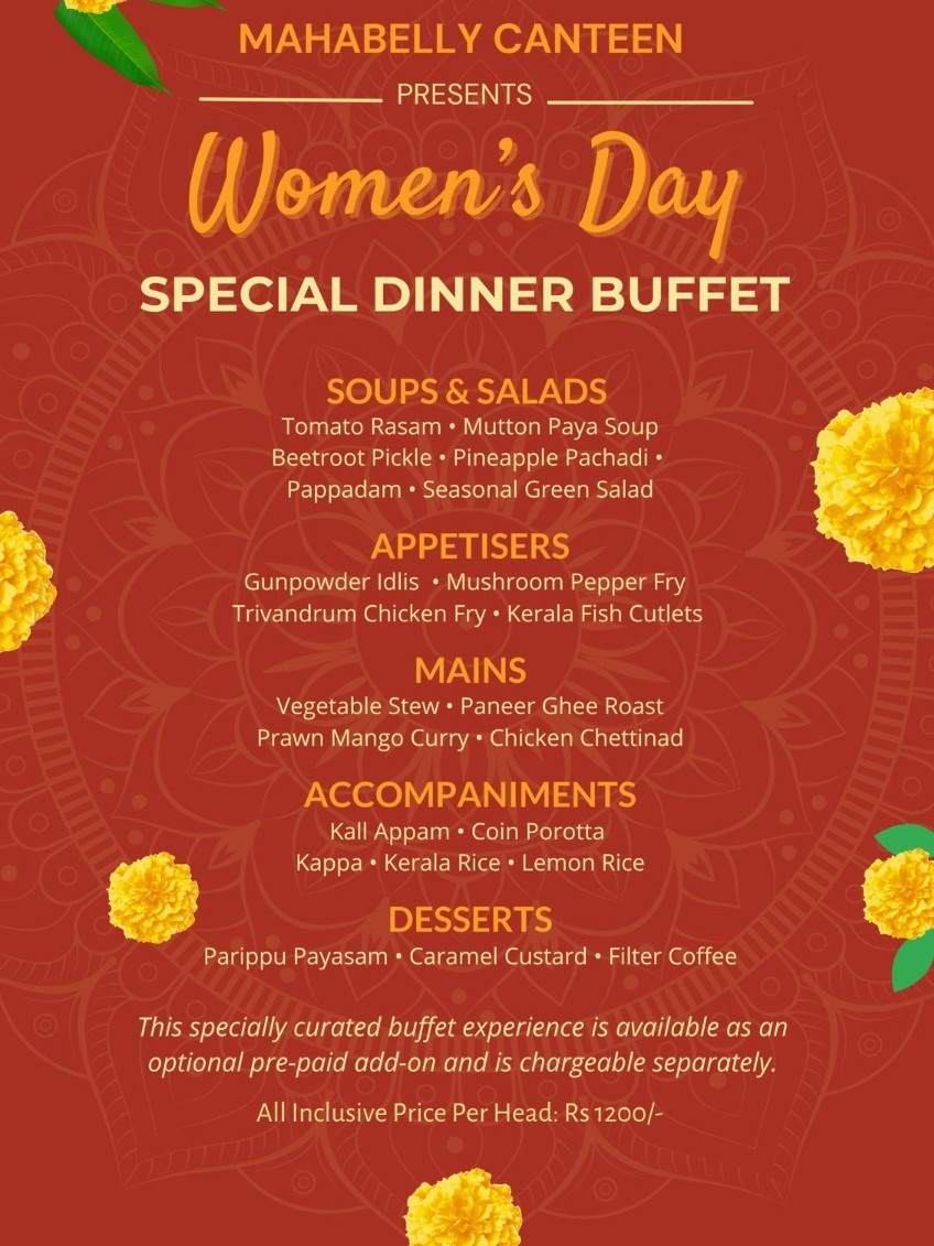 For those who wish to extend the evening, an exclusive Mahabelly Canteen dinner buffet experience will be available as an optional prepaid add-on (chargeable separately) — featuring a specially curated spread inspired by Kerala’s rich culinary heritage.