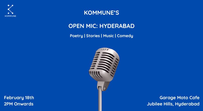 We at Kommune are back to the city of Sher-o-Shayari, Poetry, Qissagoi and Music. We are sure that Hyderabad has got a lot of talent on its land and we can not wait to discover all of it. This year we have decided to do more and more interactive, intimate and intriguing events for the artists community of Hyderabad, and we are starting it off on 18th Feb at The Garage Moto Cafe, Jubilee Hills.