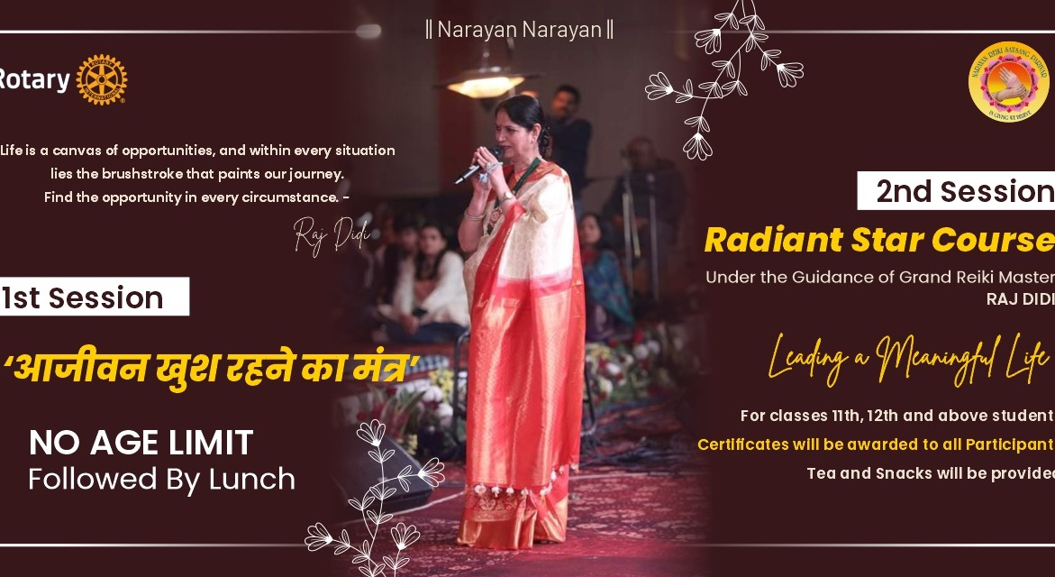 The program is all about enlightenment of happiness in within to make participant learn the art of happy living. A special energized envelop of Rs. 56 will also be provided to all participants which can be collected from office of Rotary Club Kota, Chaupati Bazar, Shopping Center Kota between 19th to 25th February 2024.