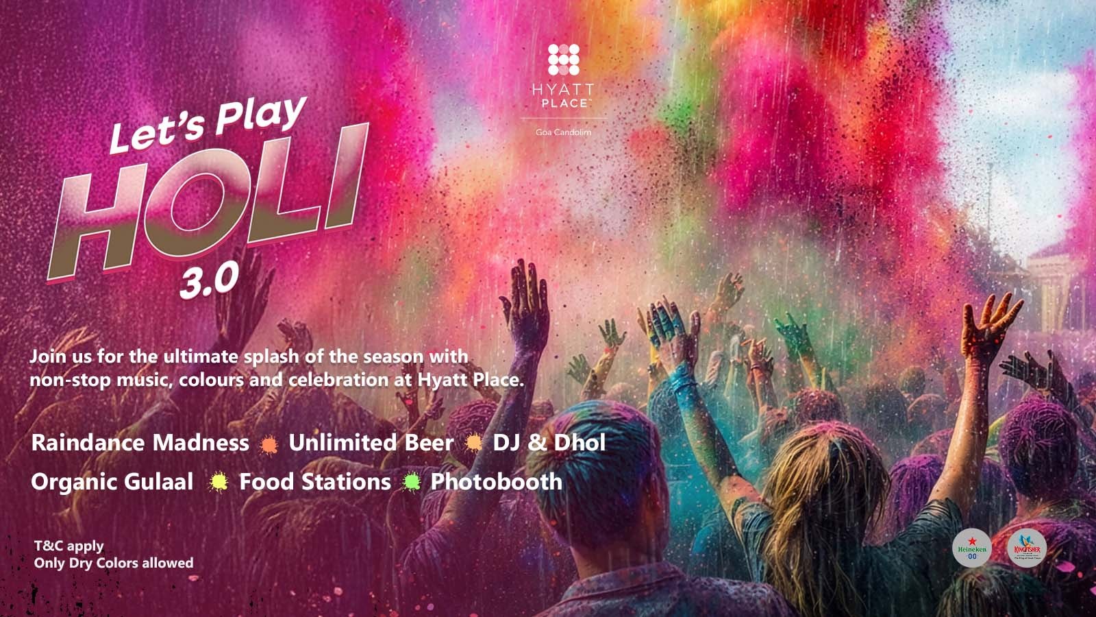 Back for the third edition, and bigger than ever — Let’s Play Holi 3.0 at Hyatt Place Goa Candolim! Get drenched in the Rain-Dance, groove to live Dhol beats, and relish organic Gulaal while sipping on unlimited beer. With vibrant food stations, a photobooth and festive joy all around, it’s the ultimate way to celebrate the season of colours.