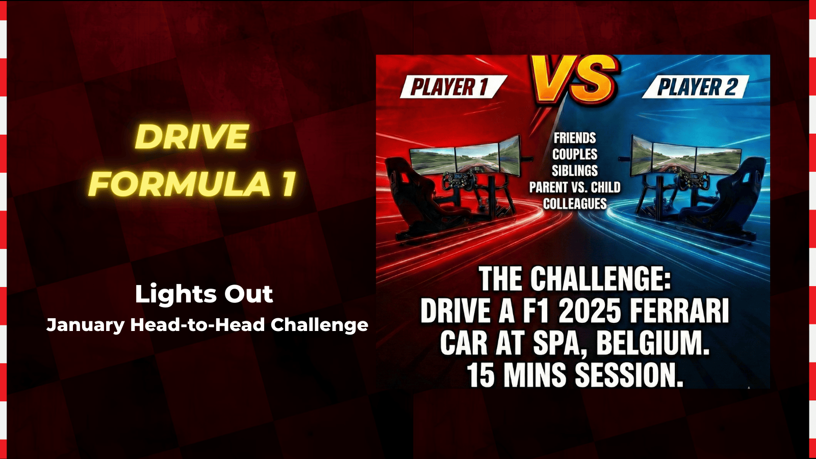 Step into our professional-grade cockpits and feel the thrill of driving a 2025 F1 Ferrari on the legendary Spa-Francorchamps circuit in Belgium. This isn't just a game—it's a 15-minute battle for bragging rights and serious rewards.