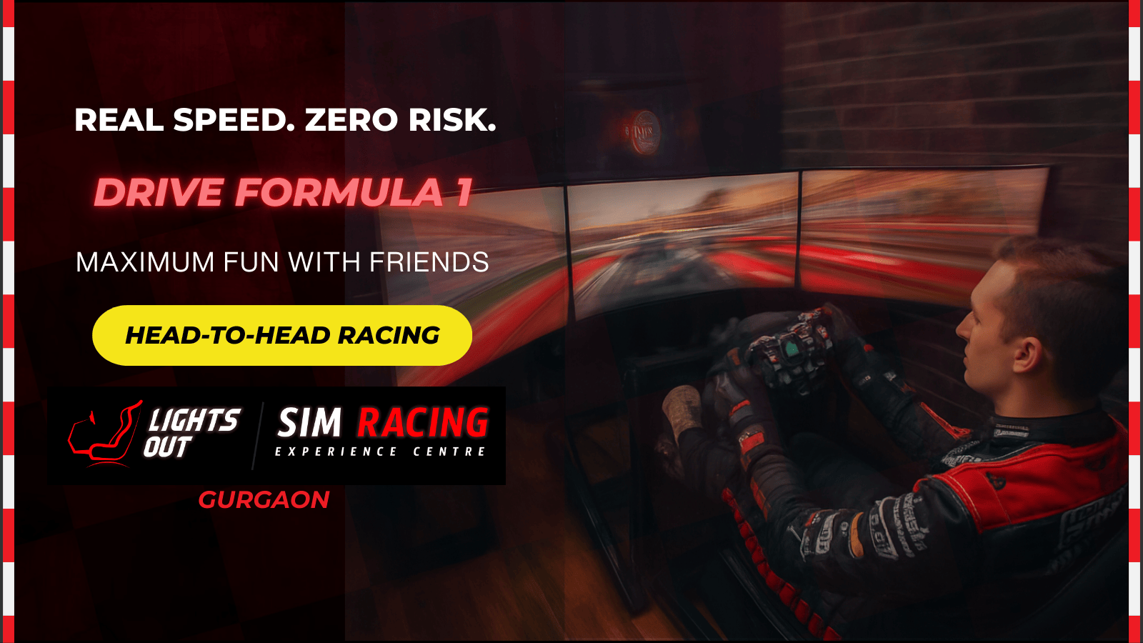 Experience the rush of Formula 1 at Lights Out Sim Racing Experience Centre. This isn't a video game—it’s Real Motorsport Simulation. Feel the raw physics and G-force through our pro-grade triple-screen immersive rigs.