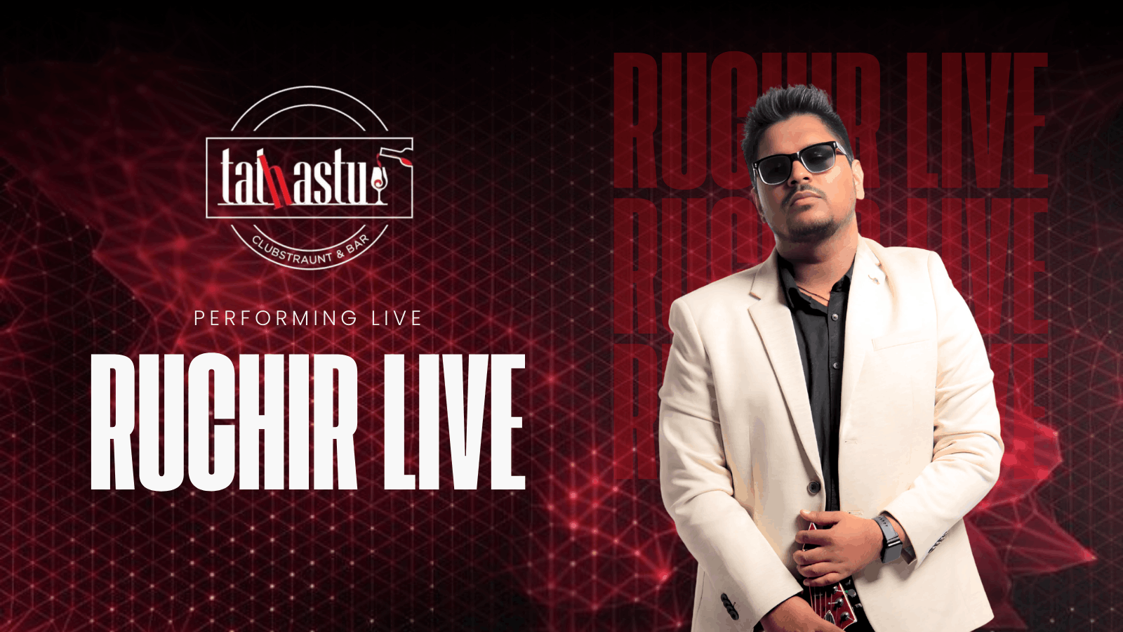 Get ready for a power-packed live music night as Ruchir performs LIVE at Tathastu Clubstraunt & Bar. 🎶