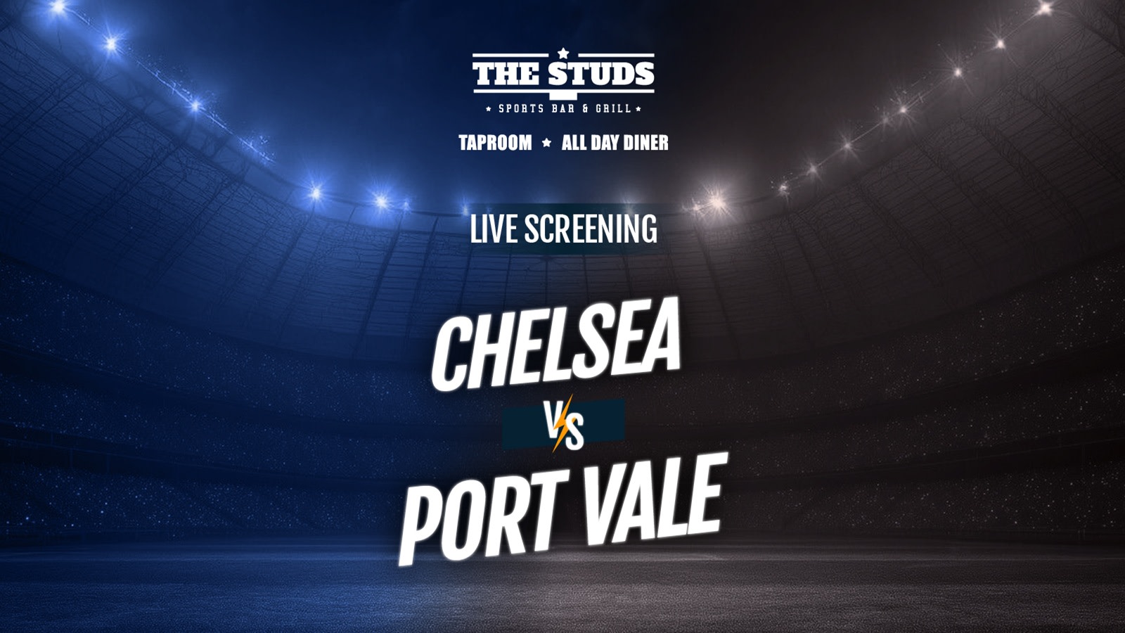 The excitement, the pressure, the knockout drama — it’s all coming alive on the big screen at The Studs Sports Bar & Grill. Join us for a power-packed Mega Screening as Chelsea F.C. vs Port Vale F.C. — a clash full of surprises you don’t want to miss.