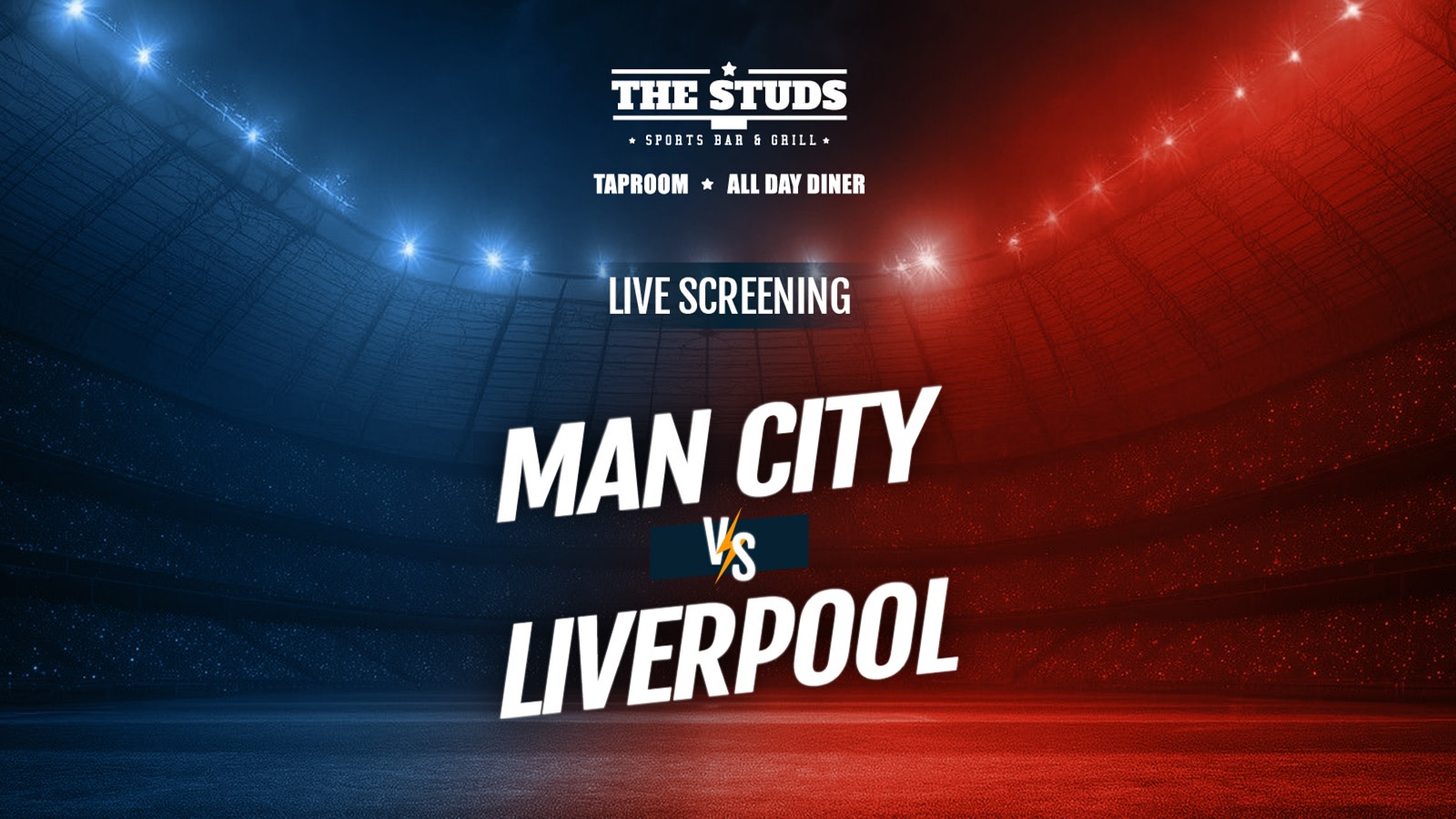 The rivalry, the intensity, the moments that define champions — it’s all coming alive on the big screen at The Studs Sports Bar & Grill. Join us for a high-voltage Mega Screening as Manchester City F.C. vs Liverpool F.C. — a clash you simply can’t miss.