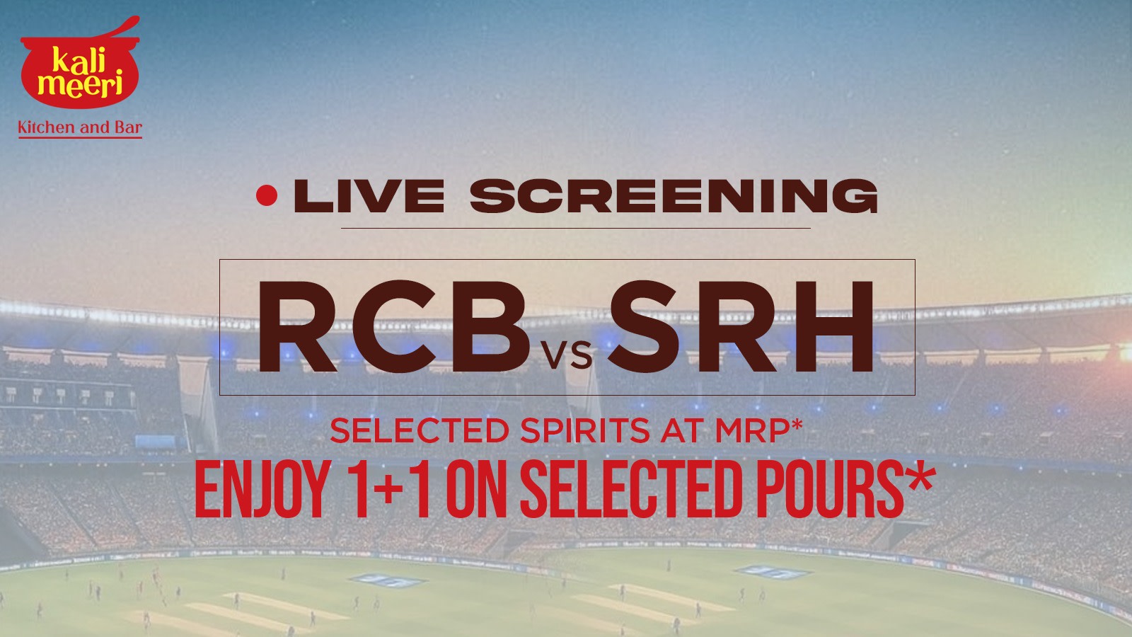 Catch every moment of the action as Royal Challengers Bangalore takes on Sunrisers Hyderabad in an electrifying live screening at Kali Meeri Kitchen and Bar! 🏏🔥