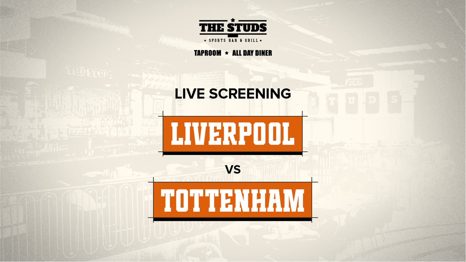 Catch the live screening of Liverpool F.C. vs Tottenham Hotspur F.C. on the big screens at The Studs Sports Bar & Grill.