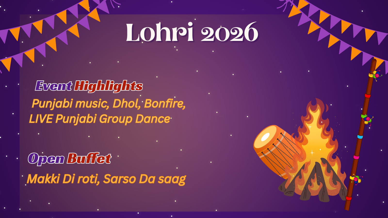Tickets for the event include the buffet, ensuring an evening of unlimited joy, music, and feasting. Don’t miss this opportunity to immerse yourself in the vibrant festive spirit of Punjab and be part of a tradition that grows richer every year!