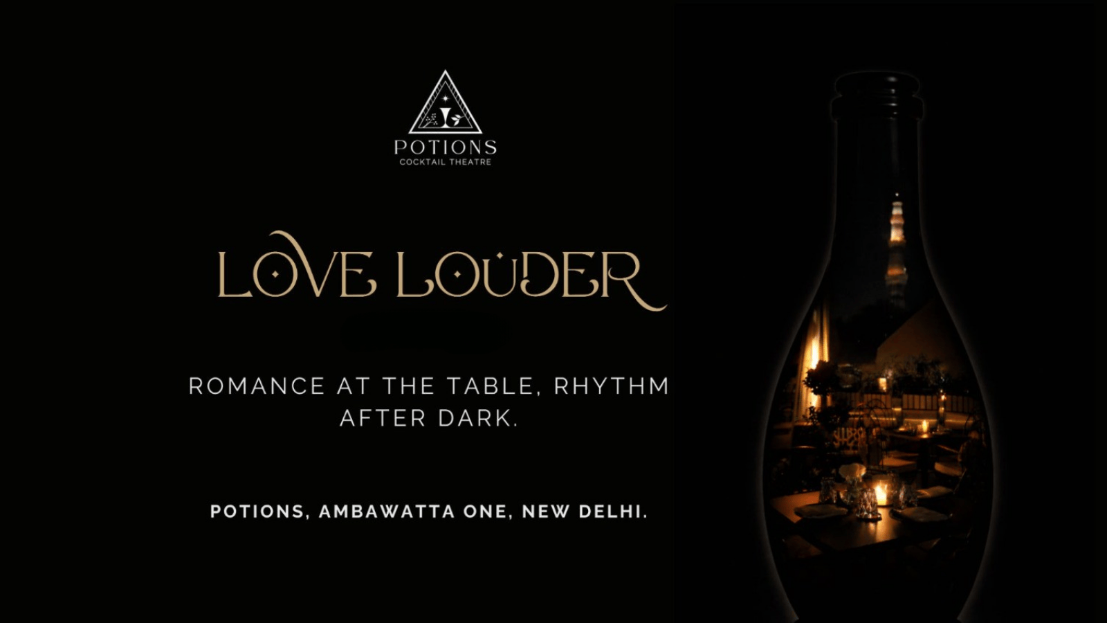 Love Louder is a high-energy, cocktail-forward dinner experience at Potions—where bold flavours, signature mixes, and a charged atmosphere set the mood. Think expertly crafted cocktails, intimate lighting, and a space designed for connection, chemistry, and celebration.