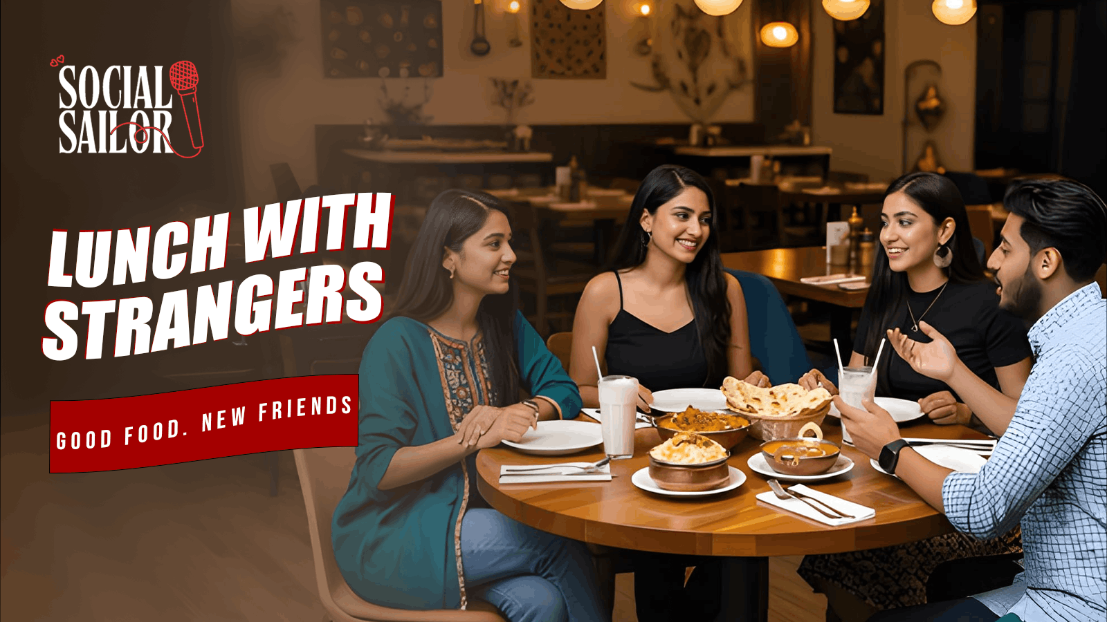 "Lunch with Strangers" is a premium social dining experience where strangers meet, eat, and leave as friends.