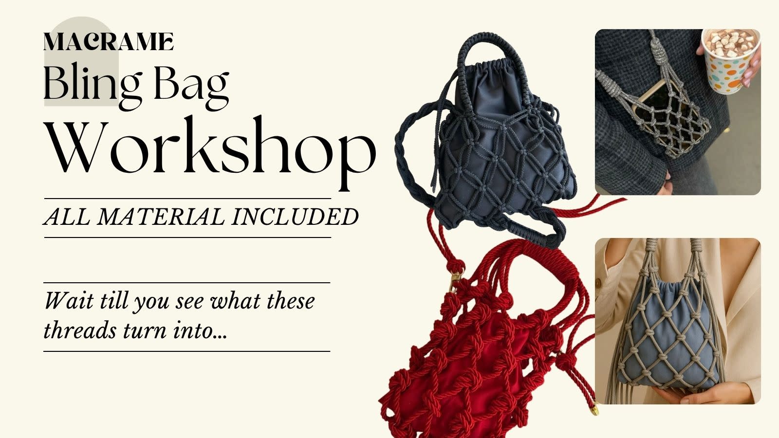 Join us for a fun, beginner-friendly workshop where you’ll create your own aesthetic macrame bling bag from scratch 🧵✨