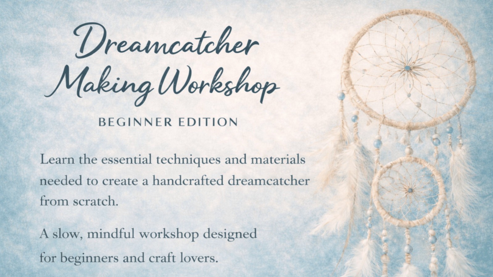 Slow down and craft something meaningful with your hands. This guided Dreamcatcher Workshop helps you learn the art, symbolism, and techniques of weaving your own dreamcatcher in a relaxed, mindful setting.