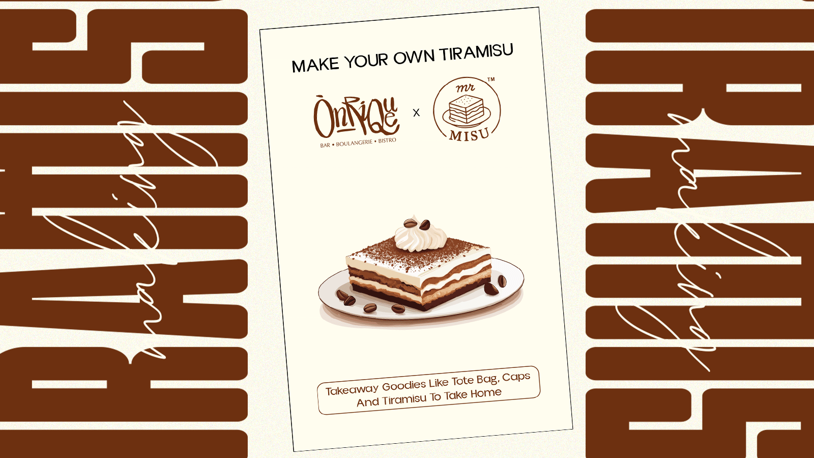 Join Mr. Misu at Onrique for an exclusive, guided workshop where you’ll learn to craft your very own classic tiramisu from layering to finishing touches.