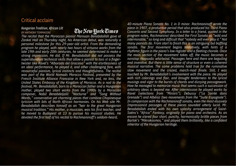 Since his first visit to India in 2007, Marouan has toured the country more than twenty times and is widely recognised among Indian classical-music audiences.