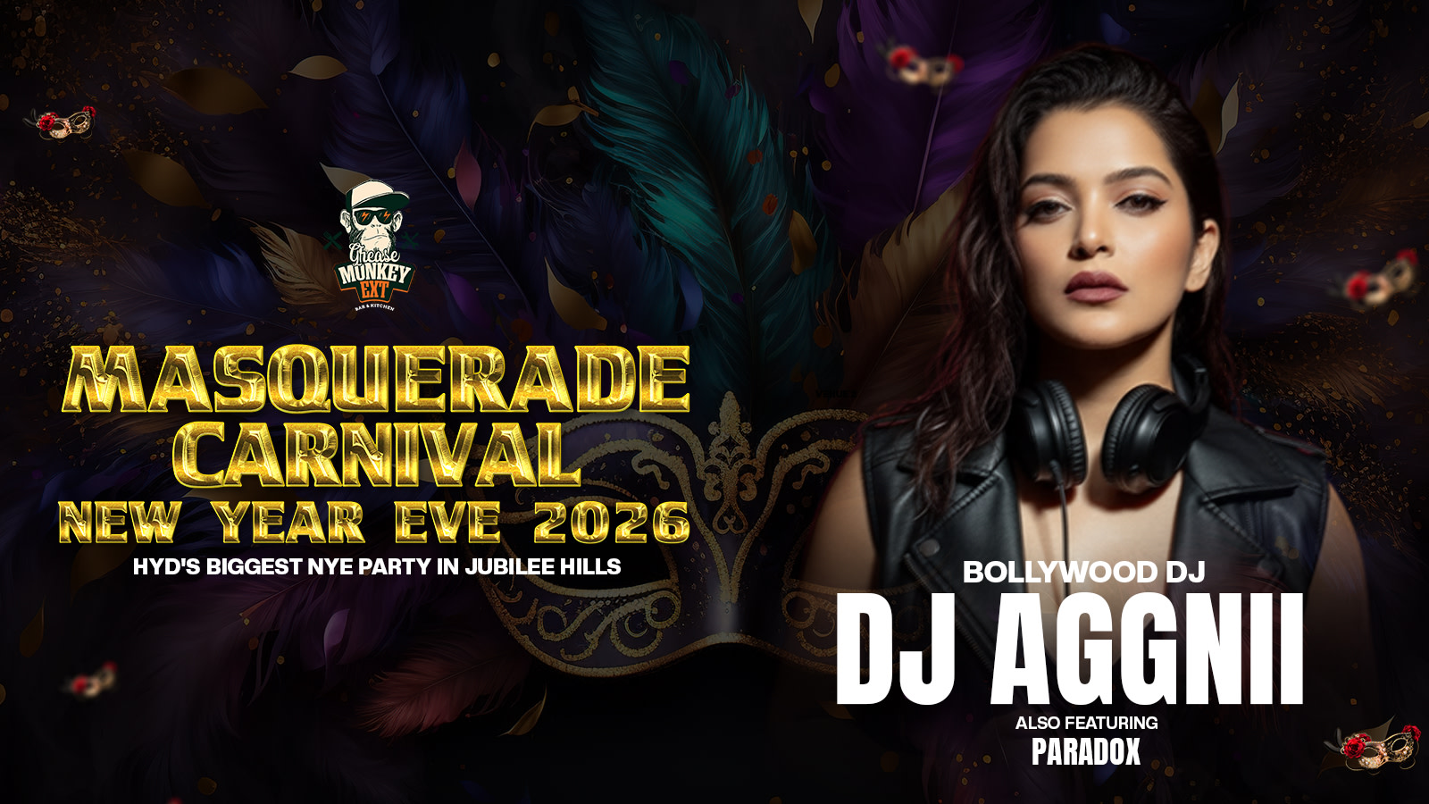 Masquerade Beats is a high-octane dance experience curated by DJ Aggnii, delivering an explosive mix of Bollywood, commercial, and party anthems. With seamless transitions, crowd-pumping drops, and vibrant visuals, the night transforms into a glamorous masquerade celebration. Enhanced by immersive production, stylish themes, and nonstop energy, this experience promises a dancefloor packed with excitement, rhythm, and unforgettable party moments