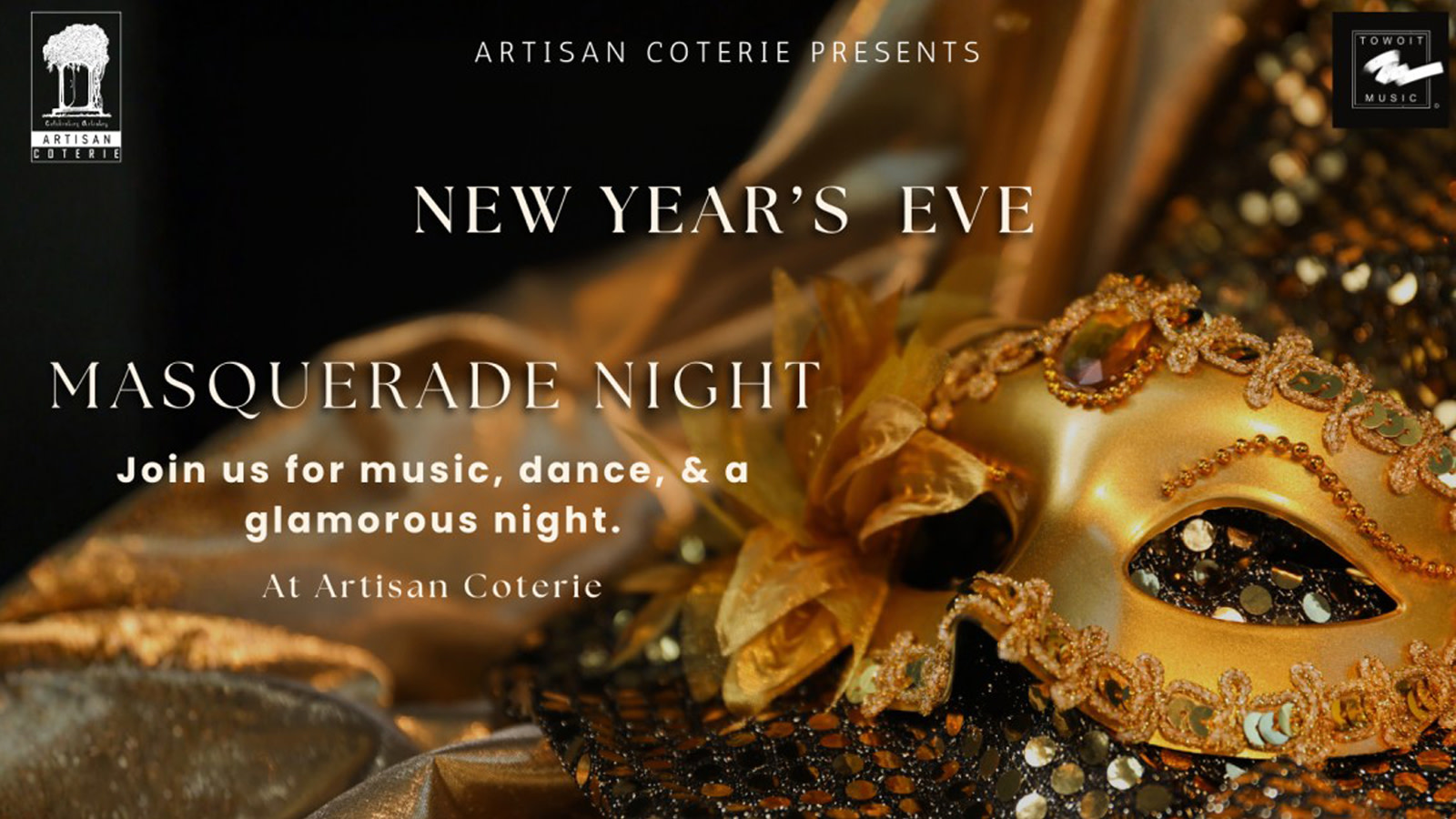 Step into a realm of allure and mystery as Artisan Coterie transforms into a shimmering world of gold, glamour, and masked elegance. This New Year’s Eve, let the final night of 2025 enchant you with immersive décor, hypnotic music, and a celebration crafted to mesmerize.