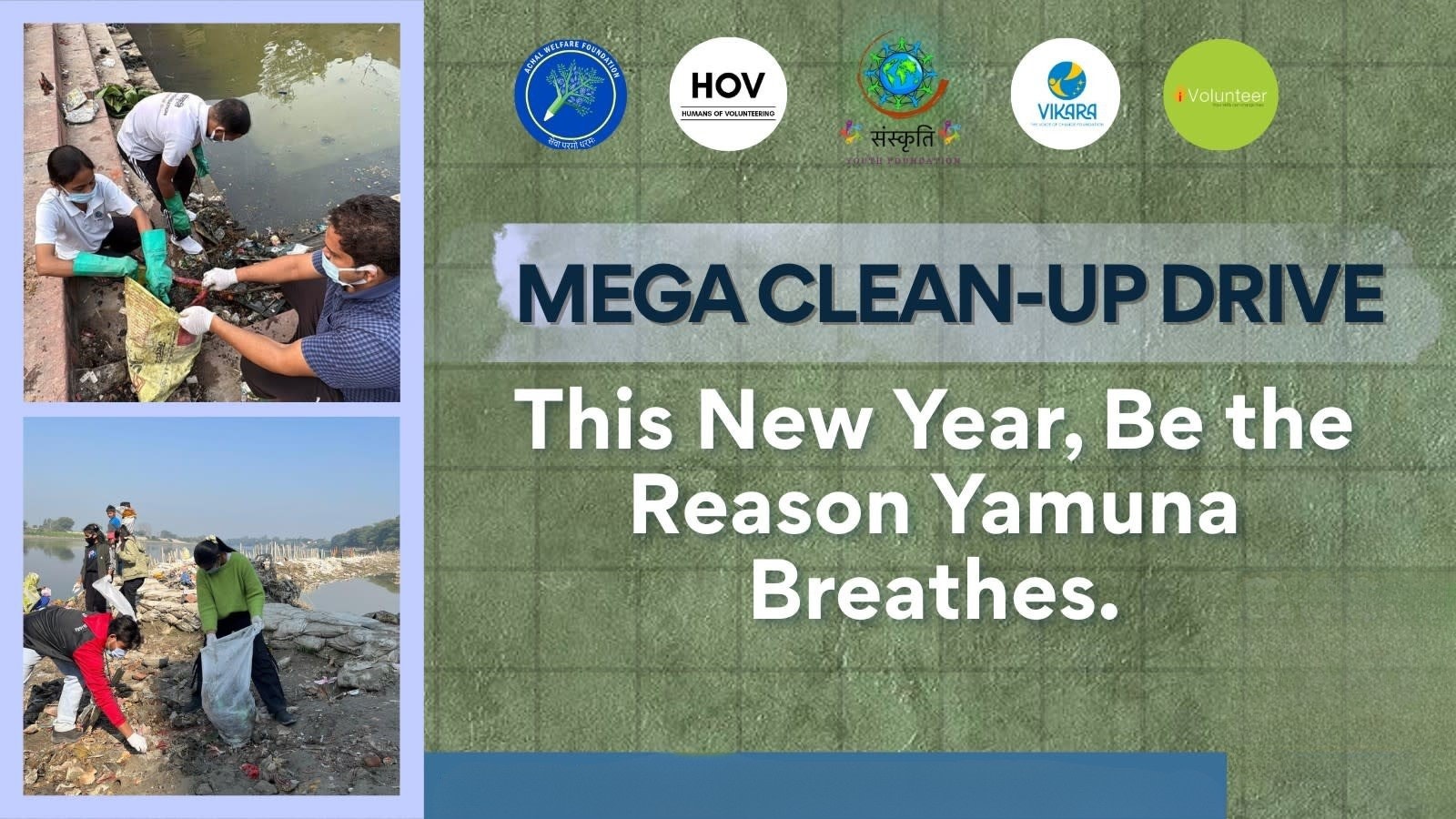 Kick-start the new year with purpose by joining the Mega Yamuna River Cleanup Drive, organized by Sanskriti Youth Foundation in collaboration with iVolunteer, supported by HOV, Vikara Foundation, Achal Welfare Foundation