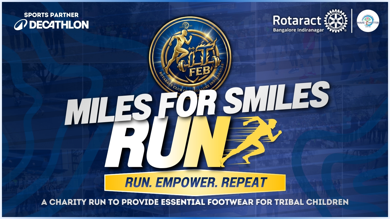 The Rotaract Club of Bangalore Indiranagar, in collaboration with Decathlon Indiranagar, presents Miles for Smiles — a charity run to raise funds for essential footwear for tribal children in Nagarhole.