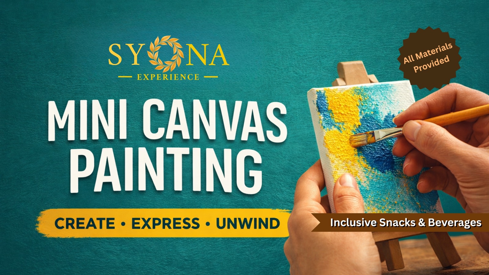 All materials, including mini canvas, paints, and brushes, will be provided. Inclusive snacks and beverages, thoughtfully decided by us, will also be served to enhance your overall experience.