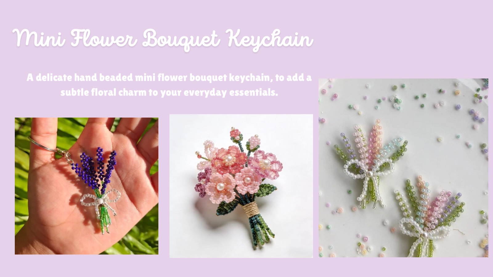 A delicate hand beaded mini flower bouquet keychain, to add a subtle floral charm to your everyday essentials.