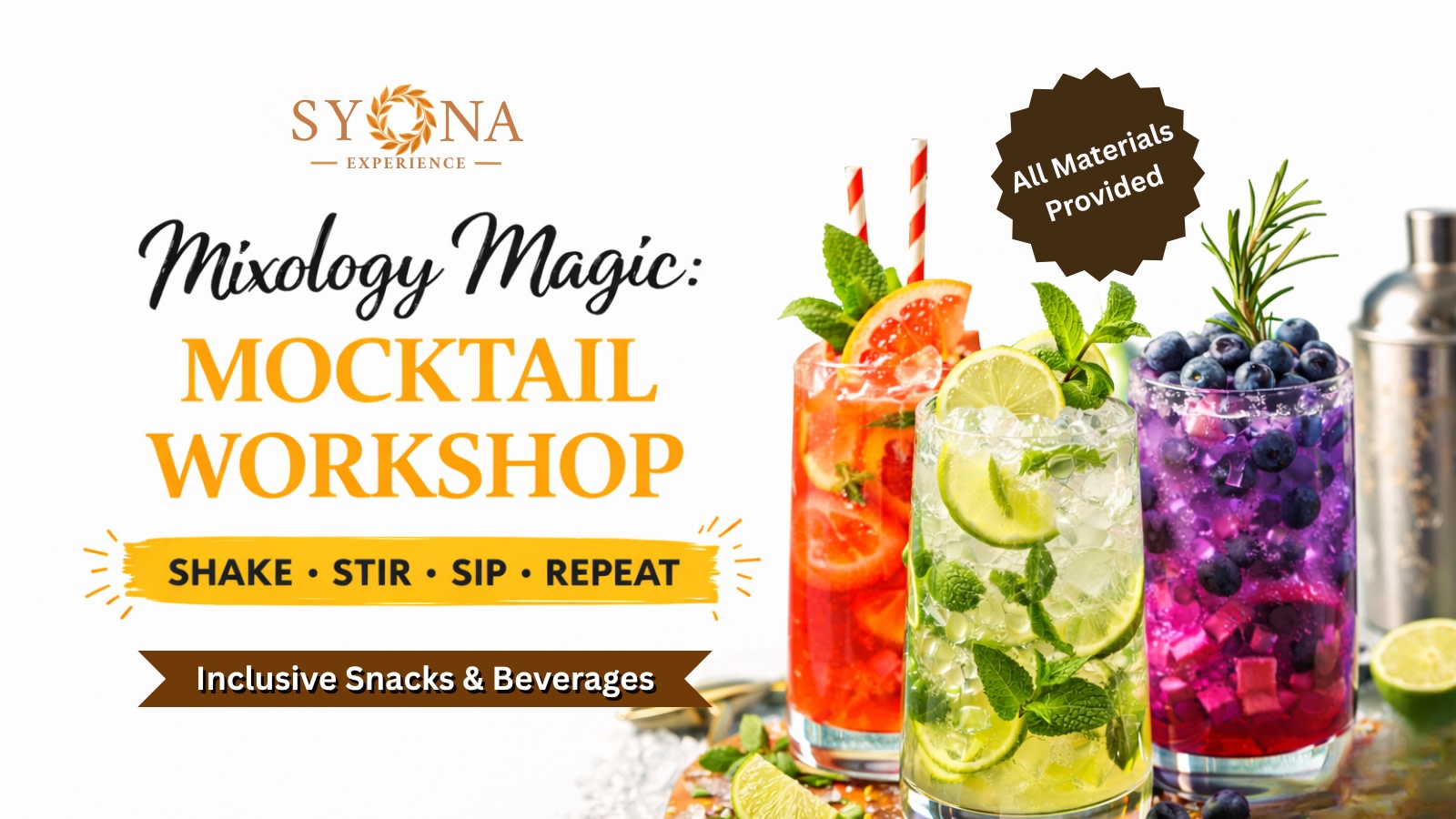 Join our Mocktail Workshop in Kolkata at Syona Experience Cafe, where you learn the art of mixing, shaking, and creating your own signature mocktails.
