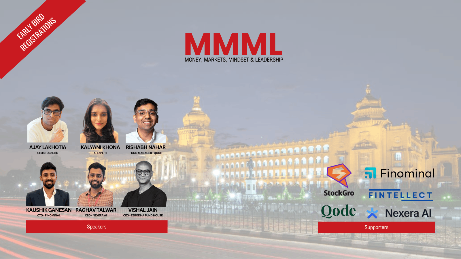 MMML's inaugural edition in Bangalore marks a new chapter. We are curating an intentional gathering of the ecosystem’s most rigorous minds to move beyond the "what" and into the "how". Join a vetted collective of peers across the domains of money, markets, mindset & leadership for a day of radical honesty, practical frameworks, and the kind of insights that aren't found in a pitch deck or a press release. A unique chance to get candid with professionals, founders, investors, and operators in the ecosystem!