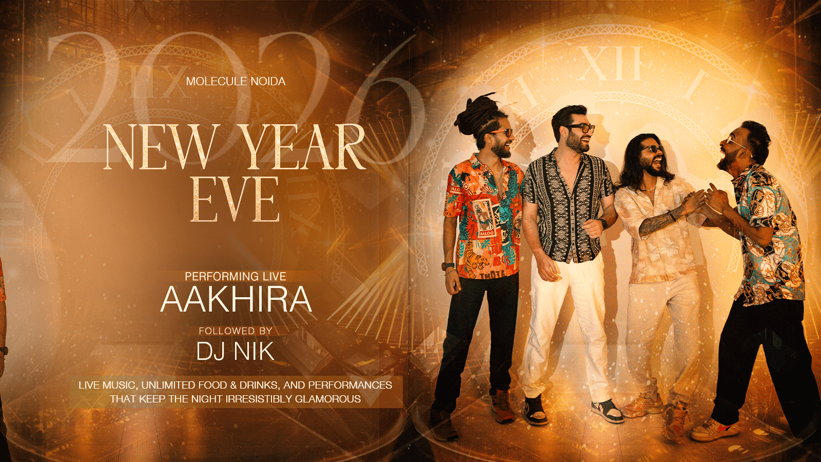 The night begins with a soulful and energetic live set by Band Aakhira, leading into a high-voltage party as DJ Nik takes over the console.