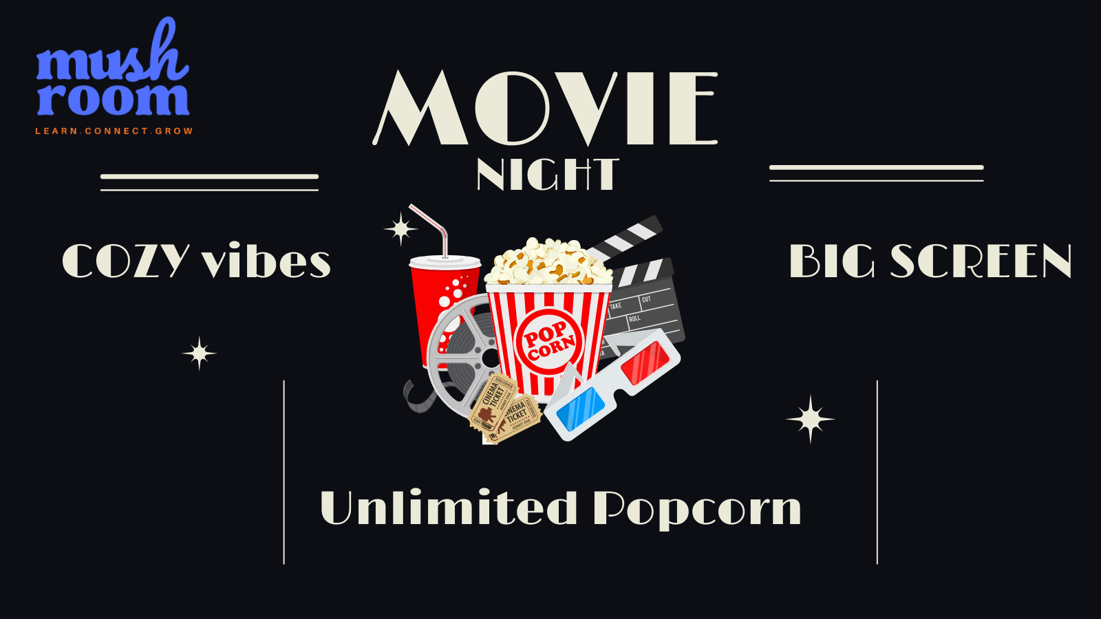 Step into an evening of pure comfort and good vibes at Mushroom Studio’s Movie Nights! Settle into our cozy space, sink into the ambience, and enjoy your favorite films on a big-screen setup designed for the perfect cinematic escape.