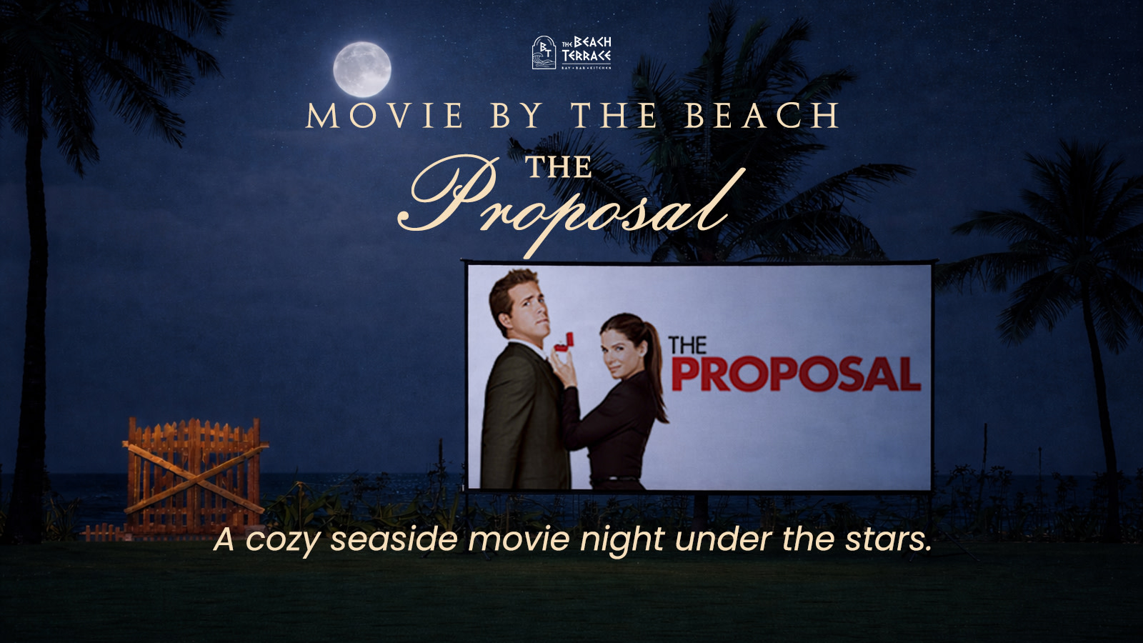We’re back with movie nights by the beach! Come over and enjoy a relaxing evening at The Beach Terrace under an open sky, with a cozy screening of everyone’s favourite romantic comedy: The Proposal.