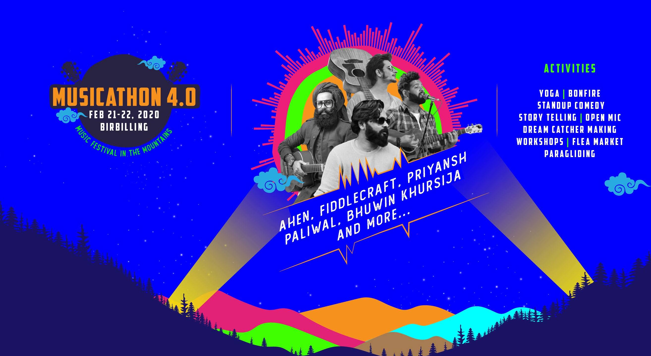 Amidst the lush green forest of Bir with the stunning backdrop of the Dhauladhar, no less. It comes together with the efforts of the local community, independent musicians and a bunch of people driven by a mutual passion for Music , Poetry and love for the Mountains.