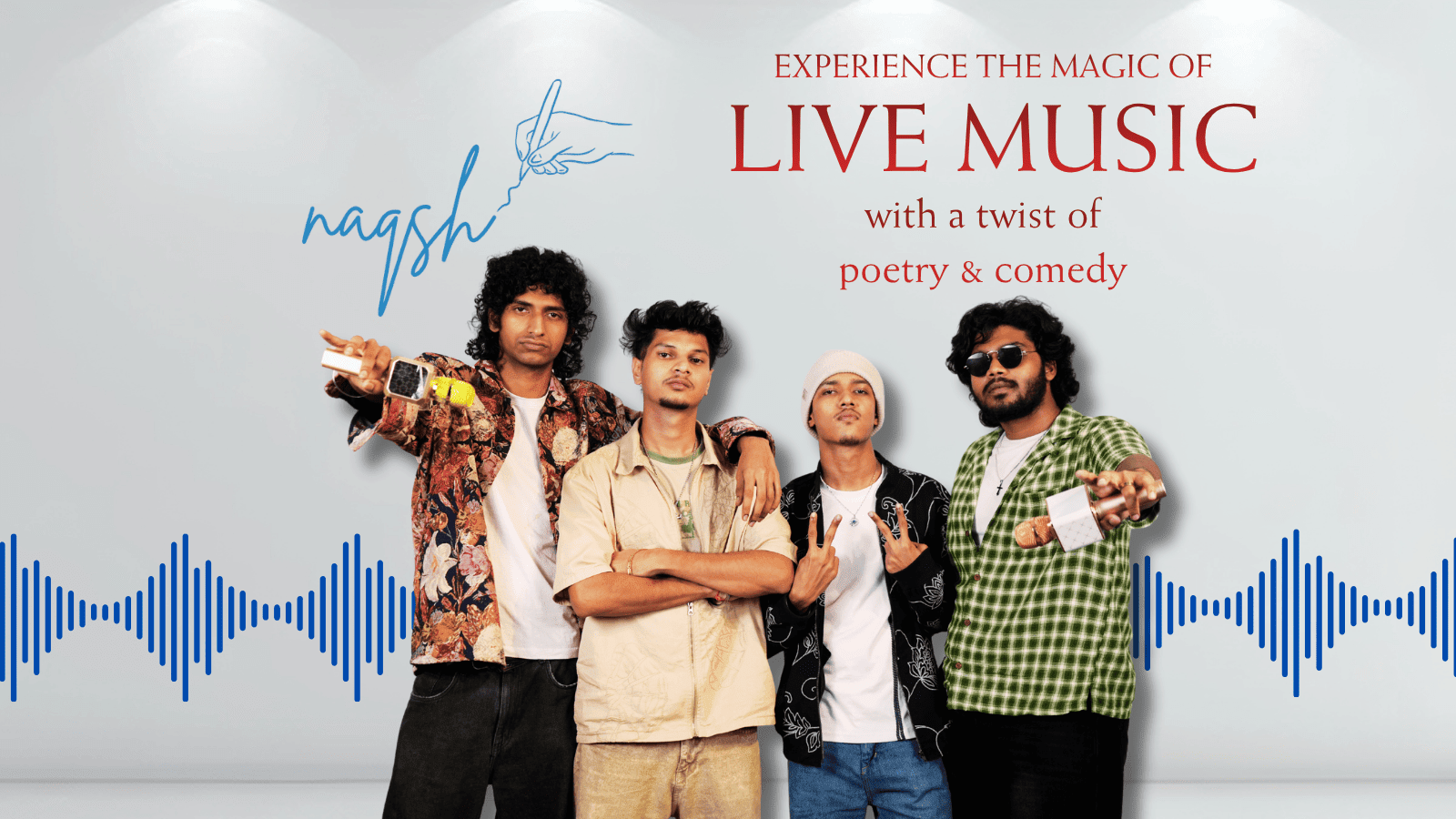 Get ready for a night where words come alive and vibes take over. NAQSH brings together a dynamic mix of stand-up comedy, soul-stirring poetry, powerful singing, and high-energy rap, all on one stage.