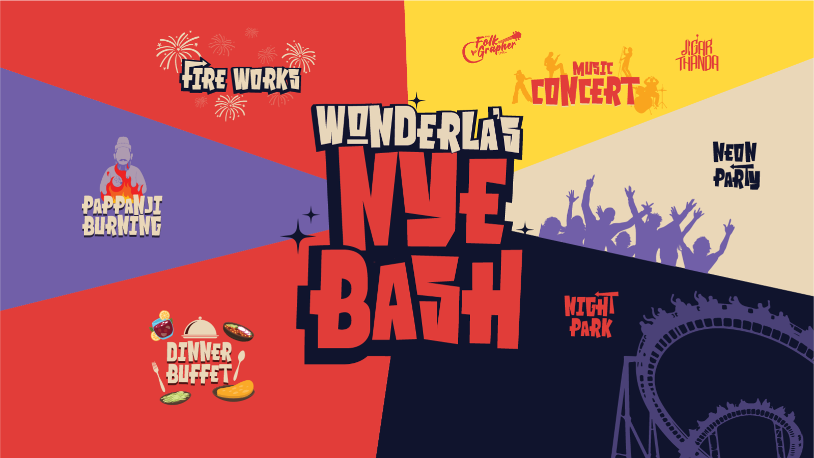 Ring in the New Year with an unforgettable carnival-style celebration at Wonderla Kochi! The festivities kick off with park entry at 6:00 PM, granting access to all exciting land rides until 10:00 PM. As the clock ticks closer to midnight, the energy escalates with a vibrant DJ Neon Party featuring electrifying music and glow-in-the-dark fun. Guests will be treated to a luxurious experience with an unlimited 3 non-vegetarian buffet, ensuring a delightful culinary journey. The highlight of the night is the spectacular NYE Night featuring performances by renowned bands like the Folk Graphers and Jigar Thanda, setting the stage for a musical extravaganza. The night culminates in a dazzling fireworks display and the traditional 'Papani Burning' ritual, symbolizing a fresh start to the New Year.