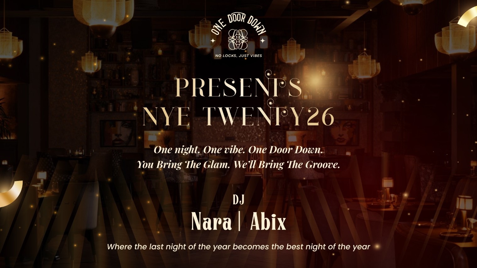 Step into Twenty26 at One Door Down, where the last night of the year turns unforgettable ✨