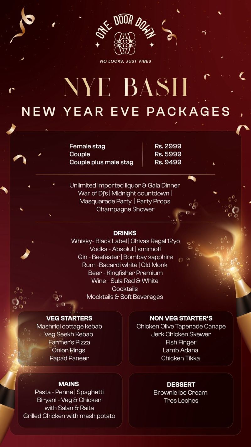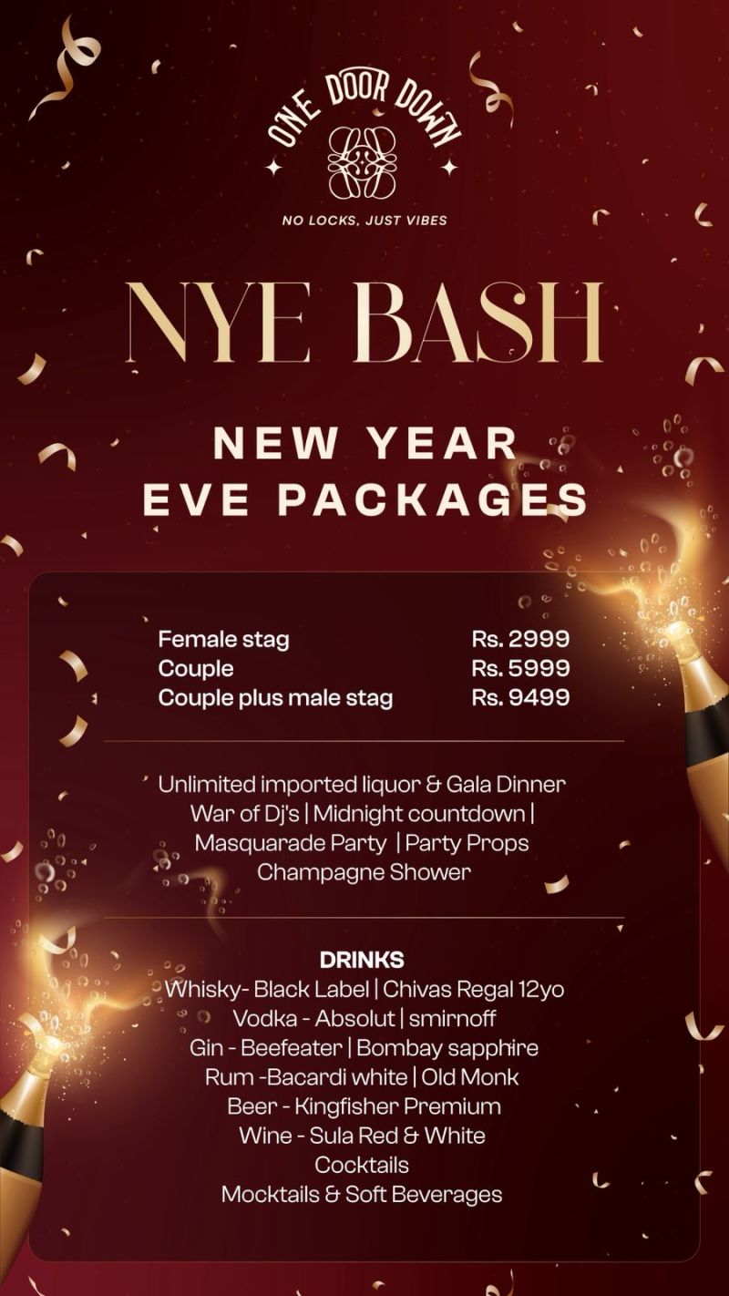 Count down to midnight where the drinks flow, the beats drop, and memories are made — One Door Down.